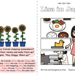 日本の女の子りさは、小学1年生の元気な女の子。よくある小学生の一日を英語絵本にしてみました。日常でよく使うフレーズや単語ばかりなので、ぜひ実際に声に出して、英会話の頻度を自宅で増やしてほしいです。