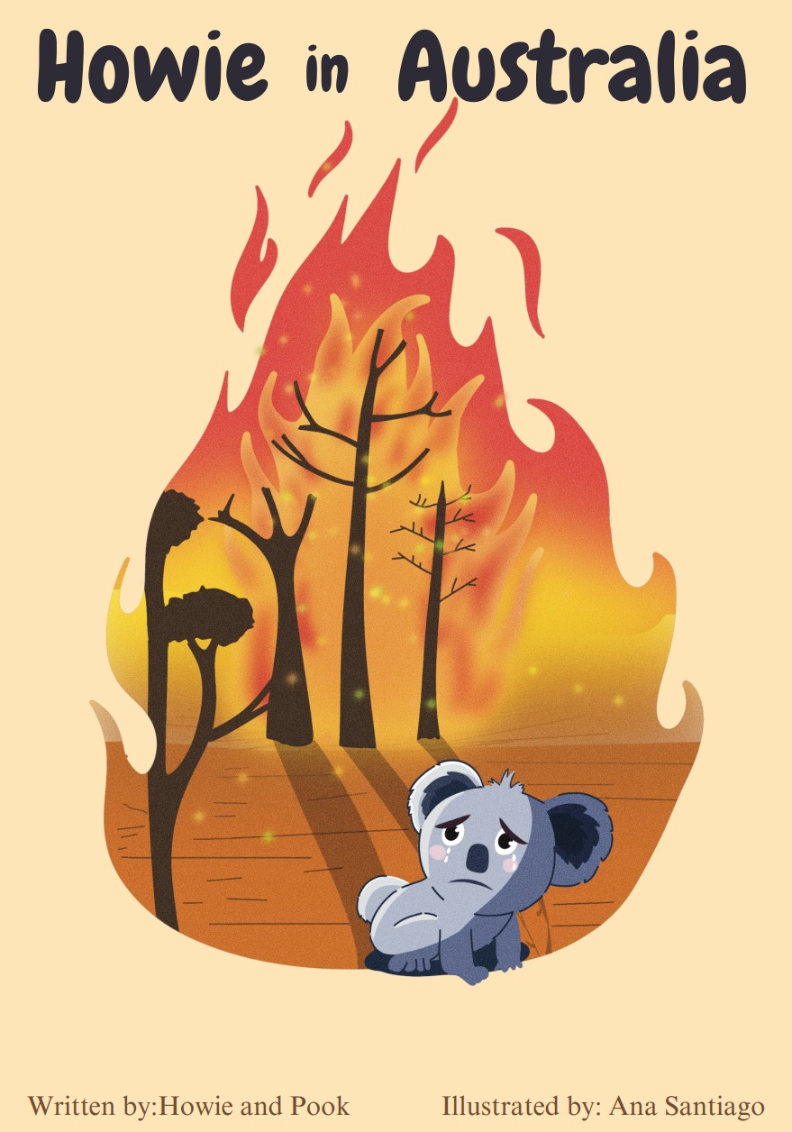 この話は現在お孫さんが二人いるオーストラリア人のハウイーの子供の頃の記憶がベースになっています。イラストはフィリピン人のアナが担当しましたが、ハウイーのアドバイスでオーストラリアらしい木や草、家等のイラストに変更され、オーストラリアの雰囲気と山火事の怖さを感じられる絵本になっていると思います。